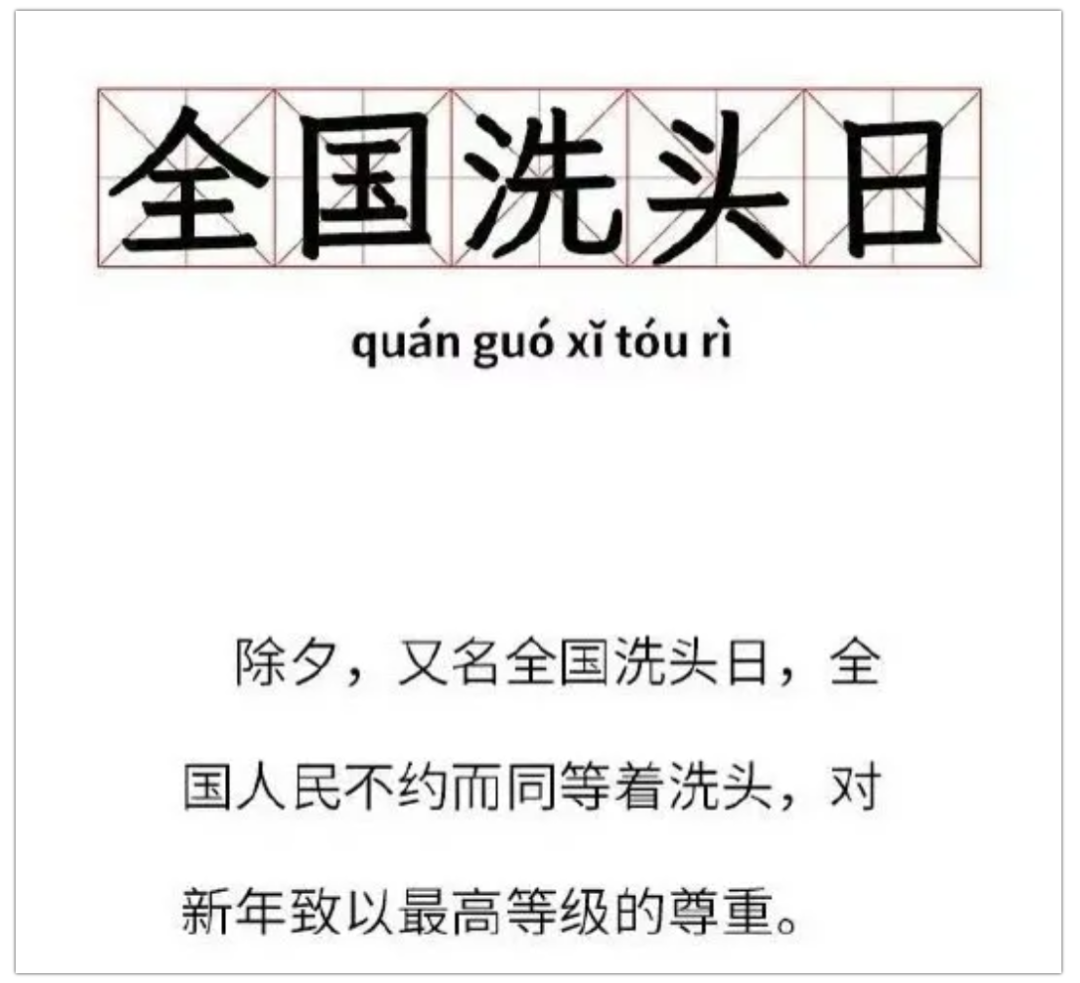 在中国传统习俗中,水常代表财运,东说念主们以为大年月朔洗头会洗走财运,所谓“除夜洗头辞旧迎新,月朔不洗守财运”,因此除夜被戏称为“世界洗头日”。