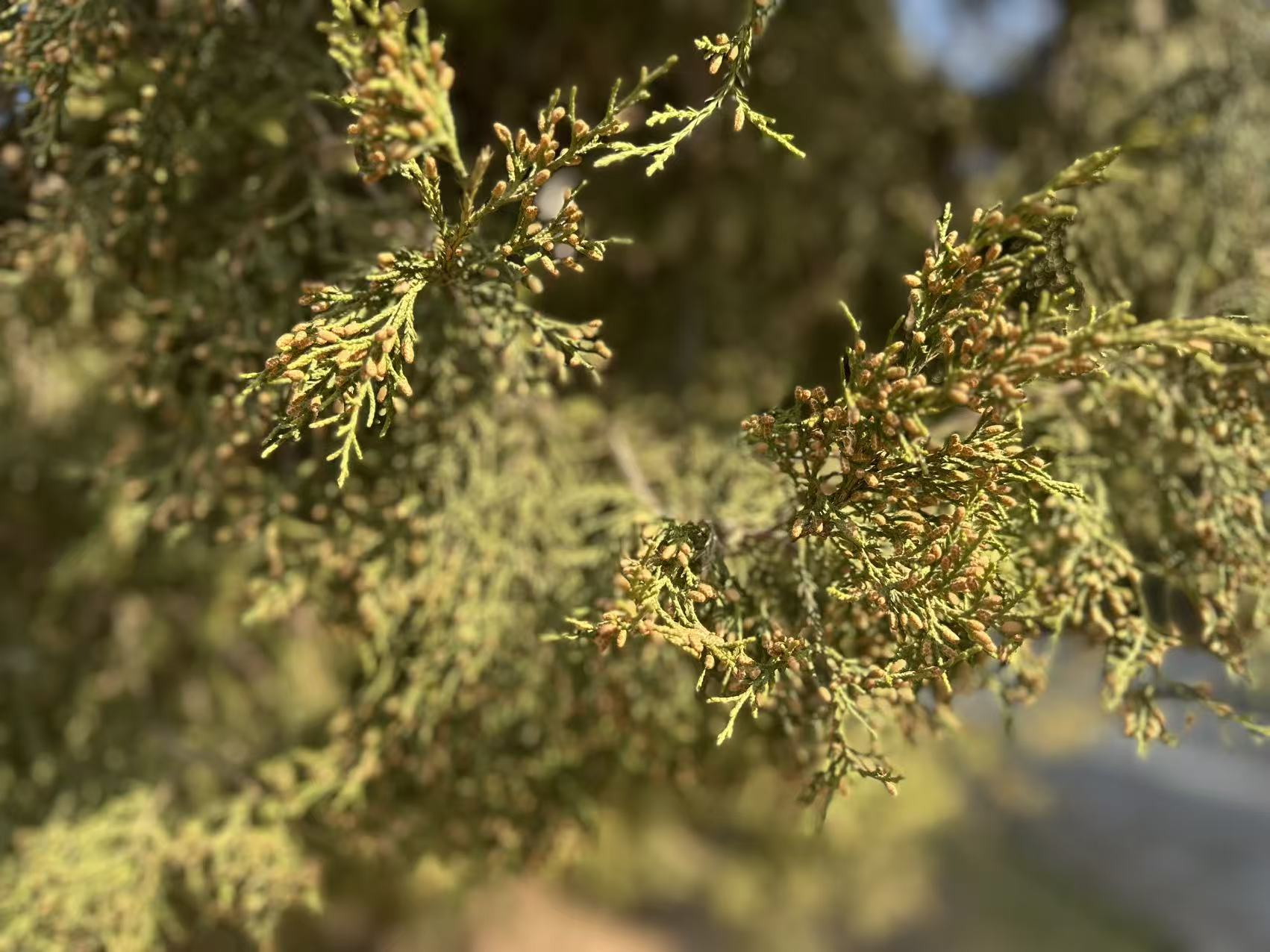 圆柏是魁伟的常绿乔木,多牝牡异株。雌株通体青翠,其球花为灰绿色,不飞粉;雄株则长着黄色的小孢子叶球结构,一朝老到便会开裂,是花粉的“起源工场”。一棵成年圆柏产生的花粉数目或以十亿计,且直径只好20—30微米,格外于头发丝的三分之一,不错万古辰悬浮在空中。在酬酢媒体的一些视频中,让“过敏星东说念主”破门而出,如沙尘暴般的“花粉雾”便是这么造成的。