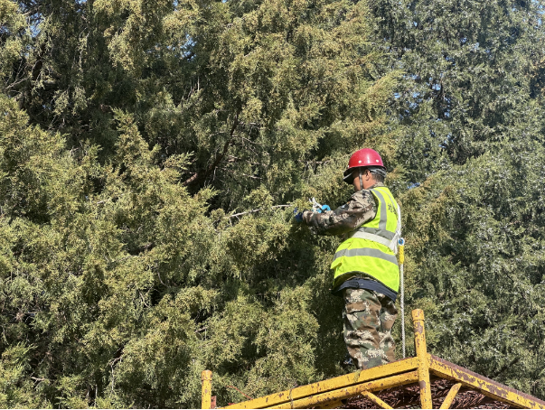 地坛公园副园长 刘洋:从过了春节之后,花苞缓缓出现的时候,咱们就运行对树木的花粉球进行修剪了。尤其是在晨曦面还有公园的一些主要路段,对它们进行专科的修剪,能从物理方面根源上减少花粉产生的数目,同期修剪也得保证树形。